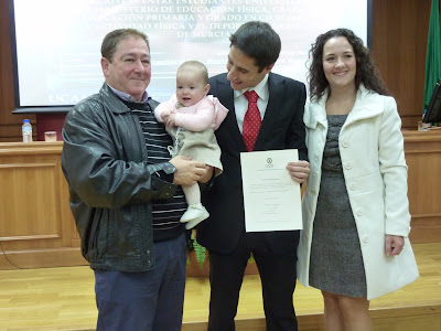 Para mí ha sido un honor contar con la presencia de Alejandro Blanco, presidente del Comité Olímpico Español, hace casi 4 años me prometió que estaría el día que defendiera mi Tesis Doctoral; desde entonces ha sido “una tortura” porque cada vez que me saludaba en algún evento deportivo las primeras palabras eran para recordarme que tenía una cita pendiente conmigo para bajar desde Madrid a Murcia a presenciar este acto. Lo mismo puedo decir de la presencia de Antonio Peñalver, el único medallista olímpico murciano y actual Director General de Deportes de la Región de Murcia, la referencia deportiva para mí y los de mi generación; o la presencia del que fuera su antecesor en el cargo Juan Antonio Morales y del alcalde de Cieza, Antonio Tamayo, de quienes guardo gratos recuerdos porque siempre me sentí respaldado gracias a su trabajo cercano. Además han estado los concejales de deportes Miguel Cascales (de Murcia), José Cabezos (de Cartagena) y Matías Ríos (de Cieza), Francisco López (anterior concejal de deportes del Ayuntamiento de Cieza); y también Joaquin Salmeron (Director del Museo Medina Siyâsa de Cieza y presidente del Centro de Estudios Históricos Fray Pasqual Salmerón) junto a otros muchos amigos… Mi familia a la que tanto debo.