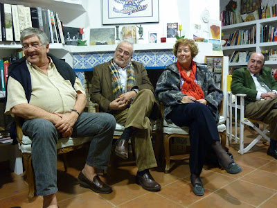 Antonio P. de Hoyos Ortiz junto a la profesora Aurora Gil Bohorque, el escritor y catedrático de Literatura Santiago Delgado y Fulgencio Martínez, director de la revista Ágora.-Papeles de Arte Gramático han sido los invitados especiales del Diálogo en el Huerto celebrado ayer tarde en la sede de nuestra Fundación “Los Álamos de JLPardos” con el título entorno a dos centenarios: Antonio de Hoyos, ciezano, escritor y maestro. Sus aportaciones, testimonios y reflexiones posibilitaron una aproximación a la figura de Antonio de Hoyos como ciezano, intelectual y maestro coincidiendo con el centenario de su nacimiento (Ver álbum de votos).